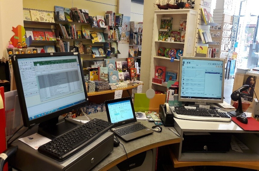 Het kassasysteem van de boekhandel gebruiken we ook op de boekenbeurzen. De deelnemers krijgen van ons een PC met geïnformatiseerde kassa en een scanner. Omdat mensen meestal betalen met een bankkaart, zorgen we ook voor een betaalautomaat voor bank -en kredietkaarten. Zo verlopen de afrekeningen snel en vlot. Op het einde van de beurs weten wij met één druk op de knop welke boeken verkocht zijn en hoe hoog de omzet is (zowel contant als via betaalkaart).